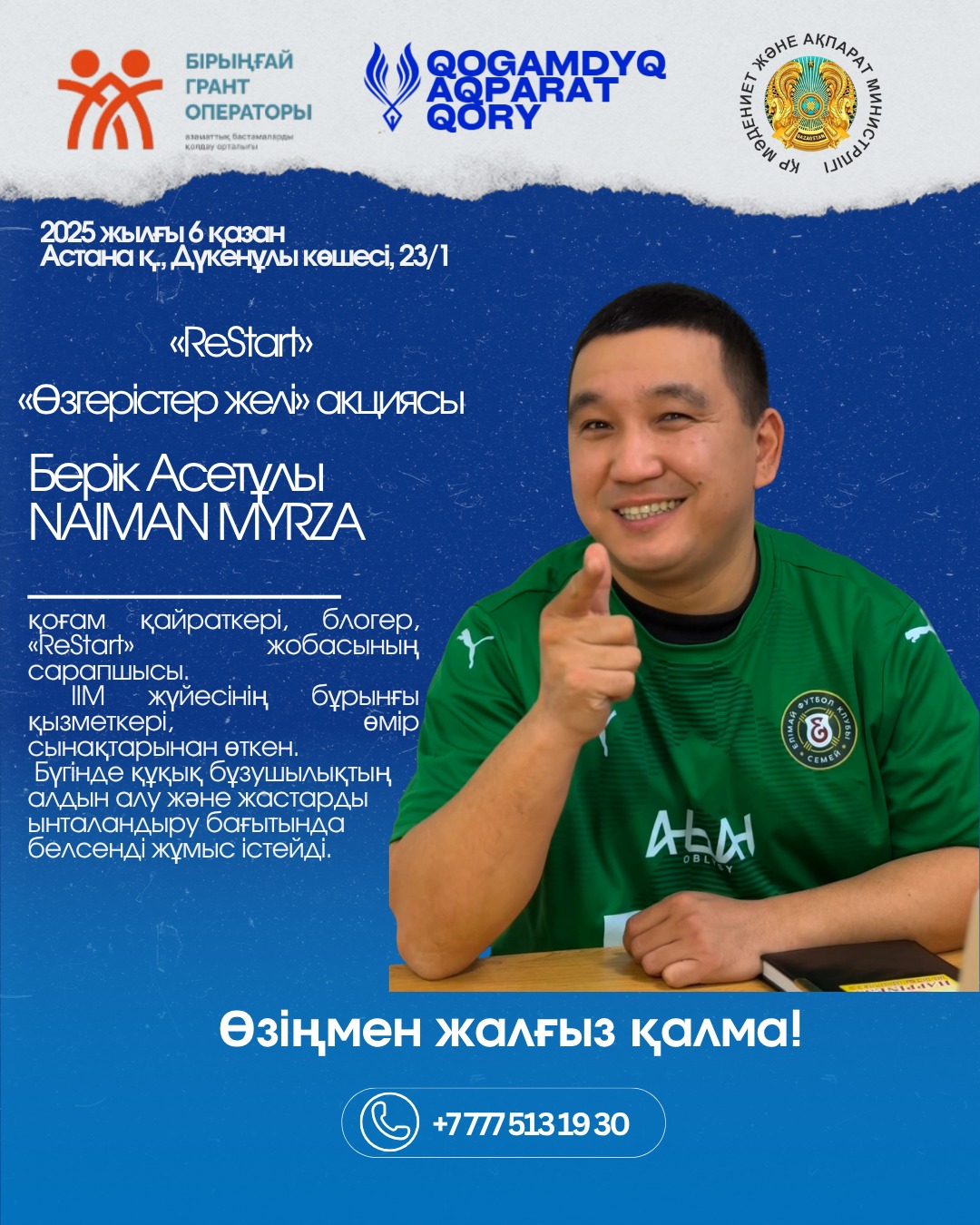 2025 жылғы 6 қазанда Астана қаласында жастардың әлеуметтік бейімделуі мен психологиялық тұрақтылығын арттыруға бағытталған «ReStart»…